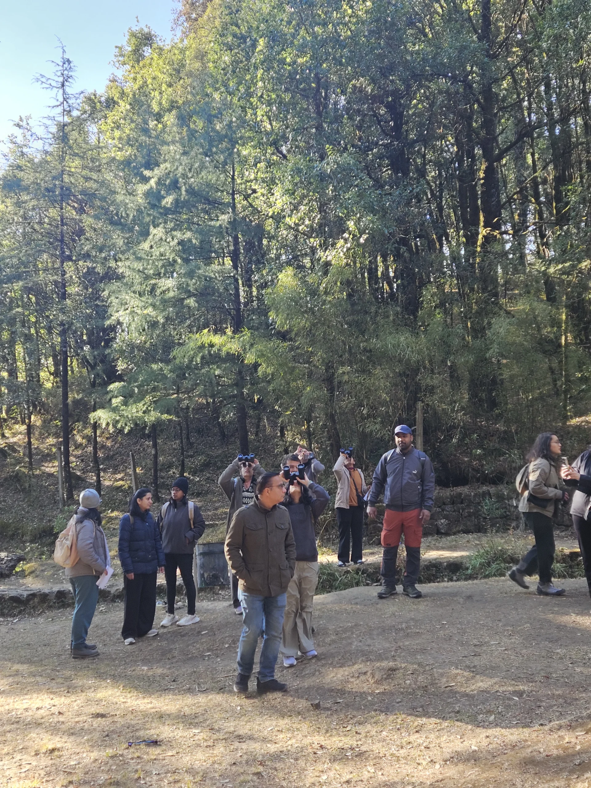 The morning delivered excellent sightings including Chestnut-crowned Laughingthrush, Himalayan Woodpecker, White-throated Laughingthrush, Rufous Sibia, Grey-hooded Warbler, Streaked Laughingthrush, Large-billed Crow, and Oriental Turtle Dove. Rohit’s guidance helped participants understand identification features and habitat preferences, turning each sighting into a learning opportunity. The walk concluded with smiling faces and a deeper appreciation for Himalayan birdlife.