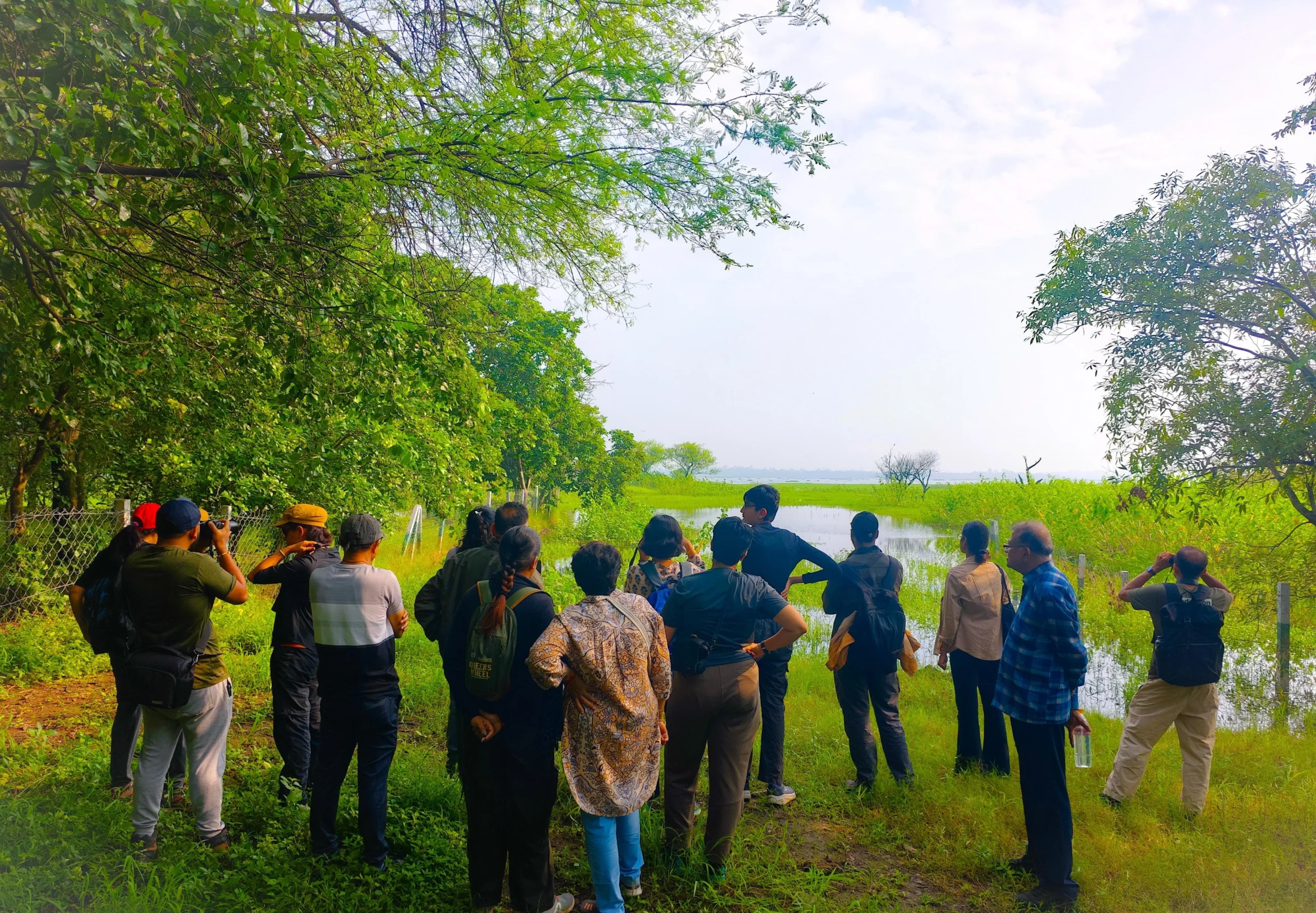 The group recorded 23 species, including delightful encounters with the Spotted Owlet, the majestic Indian Peafowl, flocks of Indian Spot-billed Ducks, the graceful White-browed Fantail, the striking Indian Paradise Flycatcher, and the vibrant Black-rumped Flameback. Alongside the sightings, participants explored the deeper meaning of birdwatching—learning how to identify species, practicing field ethics, and understanding why watching birds is as much about conservation and connection as it is about the joy of seeing them.