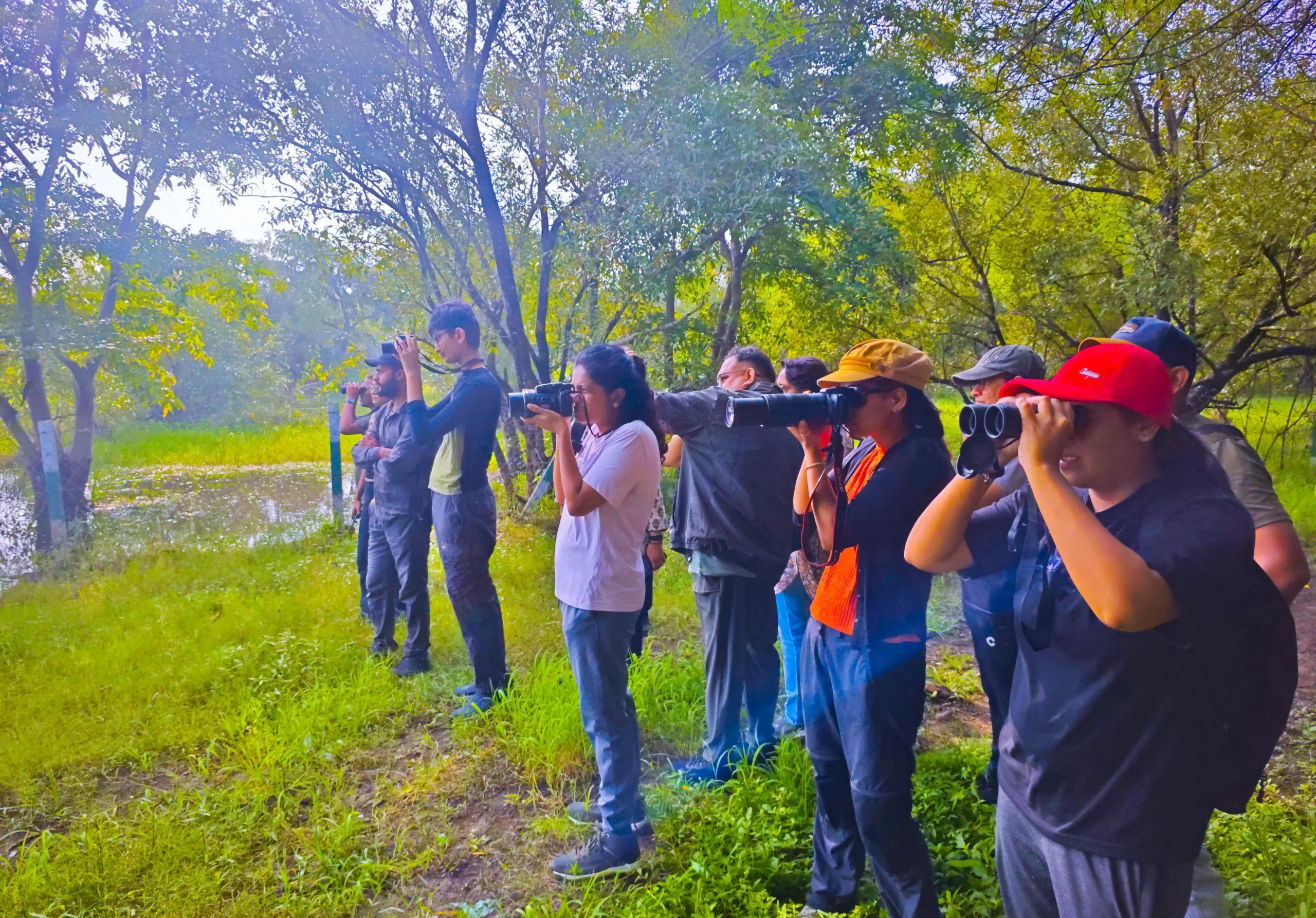 At Bhamori Forest Plantation, a refreshing drizzle delayed the start of the walk, but neither the weather nor the wait could dampen the spirit of the group. Led by Kritalee and organized in collaboration with the Madhya Pradesh Tourism Board, the walk turned into an unforgettable experience where patience was rewarded with the beauty of birds and the joy of shared discovery.