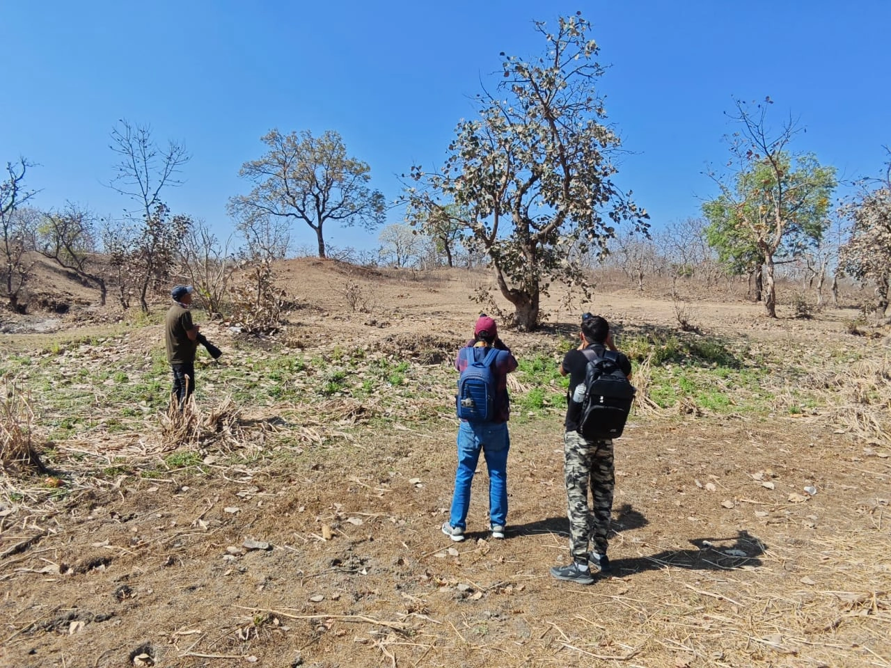 The bird walk at Mohadi and Tincha Falls, led by Yash Yadav, offered four participants an adventurous and diverse birding experience across riverine and forested landscapes. The day began with an exciting observation of Indian Rollers displaying mating behaviour, setting an energetic tone for the walk. As the group explored further, they encountered species like Indian Paradise Flycatcher and several common woodland birds.