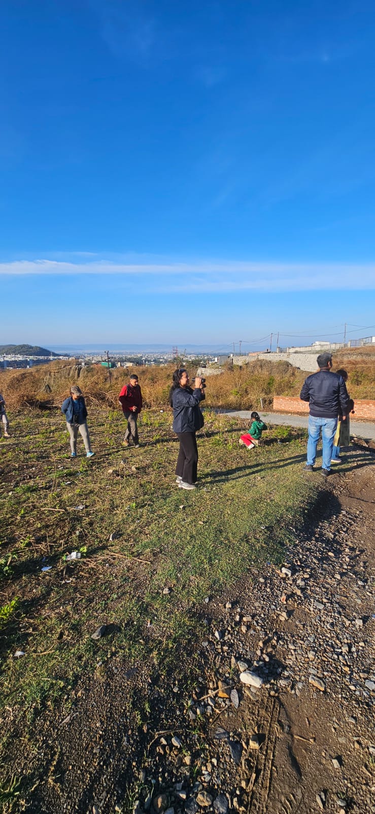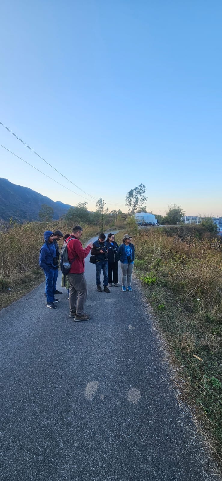 The experience was further enriched by interactive moments, such as identifying a Scarlet Minivet and observing Crimson Sunbird up close. Participants also explored agricultural fields and forest patches, spotting a wide variety of species including parakeets, shrikes, and laughingthrushes. The walk concluded with relaxed discussions over tea, making it not just a birding session but a memorable social and learning experience.